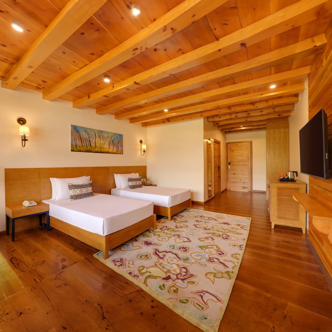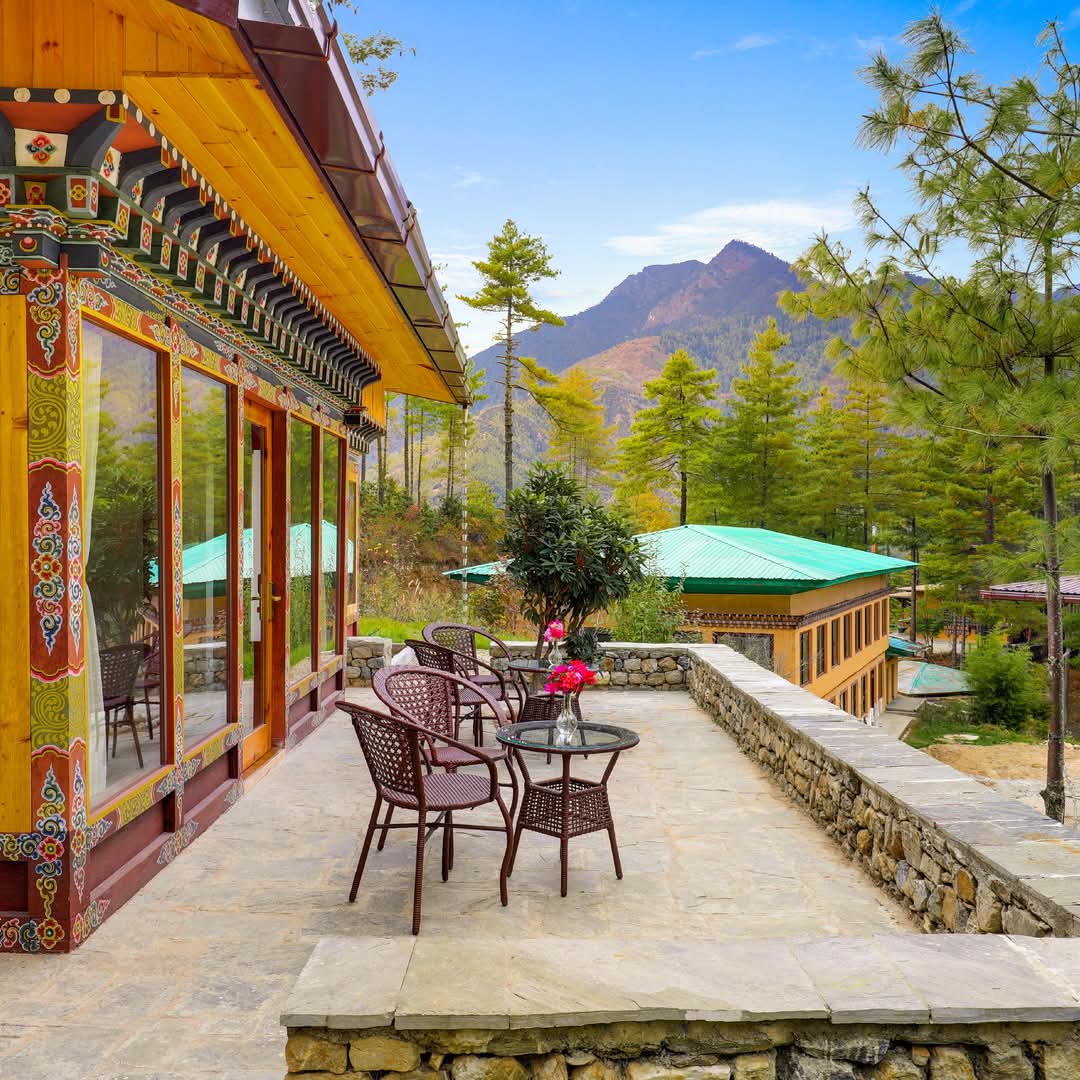 Guests are welcomed with warm, unmatched hospitality and thoughtfully designed rooms equipped with modern amenities to ensure a comfortable and memorable stay. From stylish interiors to attentive service, every detail reflects quality and care. The resort’s indulgent dining options showcase a delightful mix of local Bhutanese flavors and international cuisine, offering a satisfying culinary experience in a serene setting.