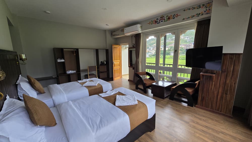 Star Residency Hotel is a brand new 3-star hotel in Paro, Bhutan, perfectly located in Paro main town and offering a peaceful stay with beautiful paddy field view rooms. Combining modern comfort with scenic surroundings, the hotel is an ideal choice for leisure travelers, families, and tour groups looking for the best hotel in Paro with excellent value and service.
