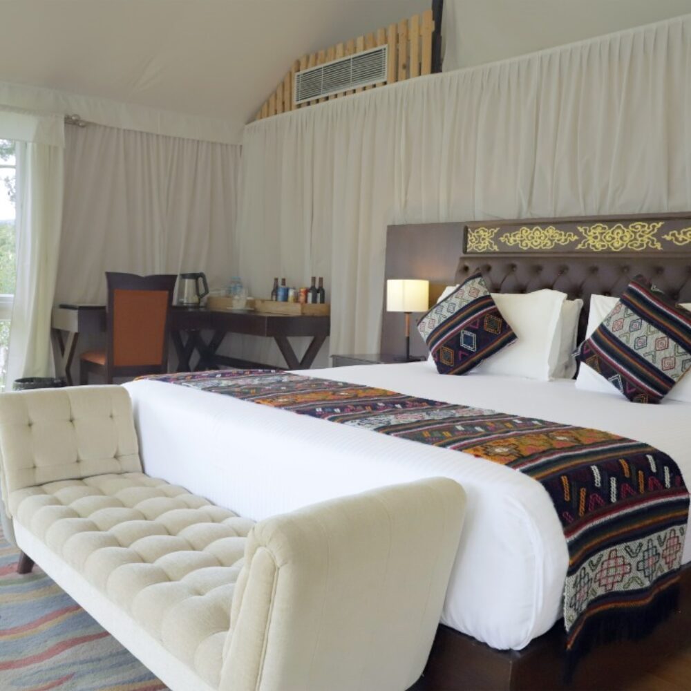 The resort features a total of 36 well-appointed deluxe rooms, designed to provide modern comfort in a calm and relaxing environment. In addition, guests can enjoy a distinctive experience in the 15 Luxury Villa Tents, which combine the charm of nature with refined amenities, offering a perfect balance of adventure and comfort. Each accommodation option is thoughtfully designed to allow guests to enjoy panoramic views of the monastery and the majestic mountain scenery.